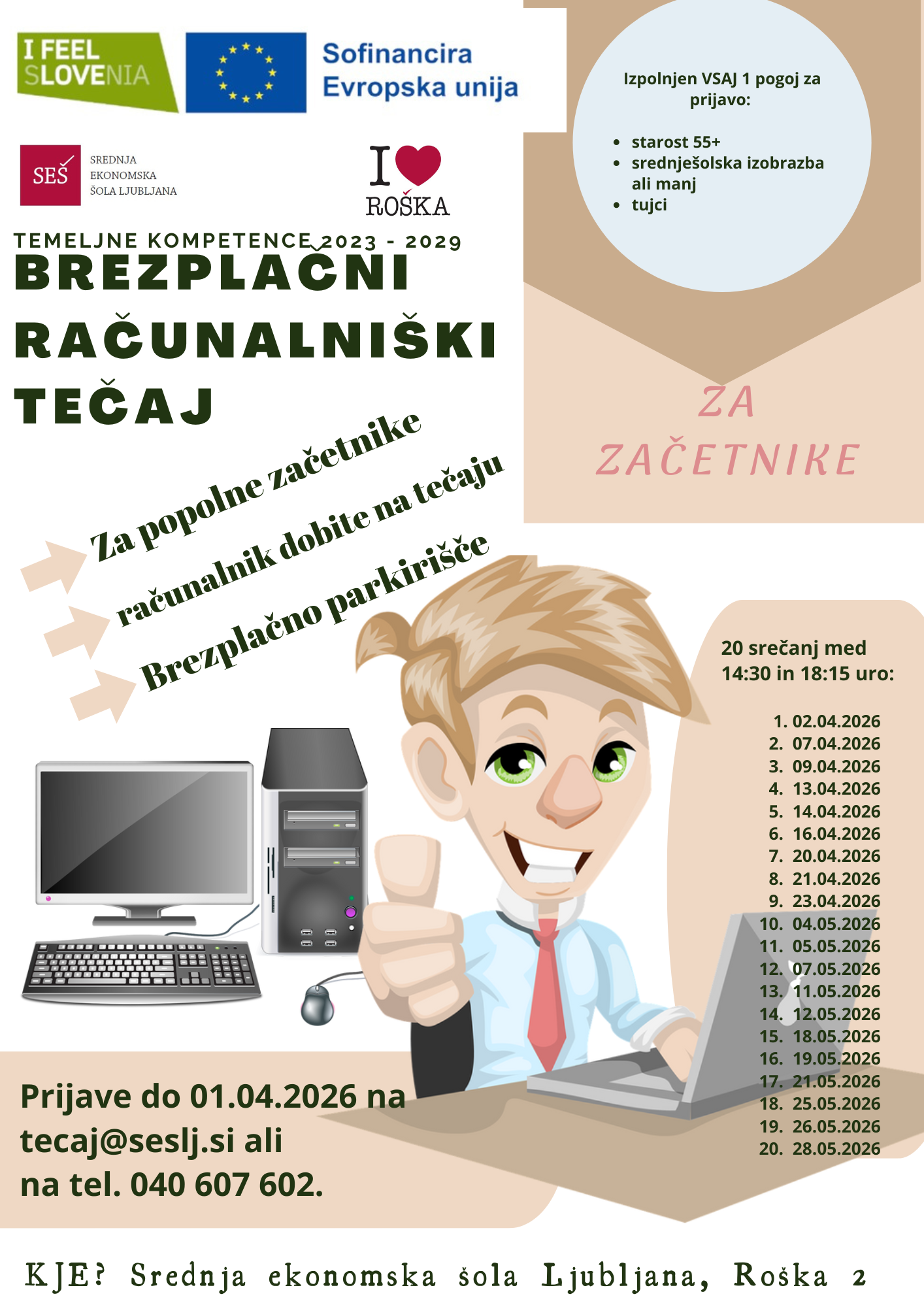 Računalniška pismenost za odrasle – skupina 1 (100 ur) – 2. 4. 2026 – Srednja ekonomska šola Ljubljana – PRIJAVE SO ODPRTE.